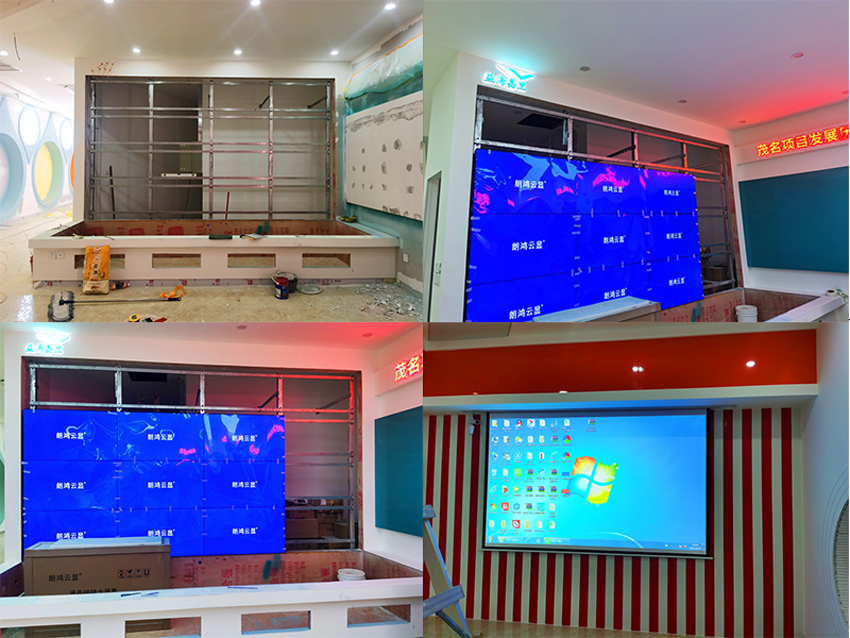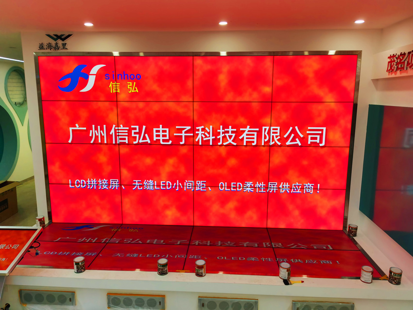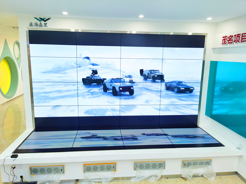 2021年1月底廣州信弘公司產(chǎn)品進(jìn)駐益海嘉里(茂名)糧油工業(yè)有限公司展廳,本項目是采用46寸S46-XHL1ME 6X4的拼接方式,根據(jù)設(shè)計要求,整套拼接屏呈L型的拼接方式。其中16塊屏為常規(guī)的安裝方式,另8塊安裝在地面。